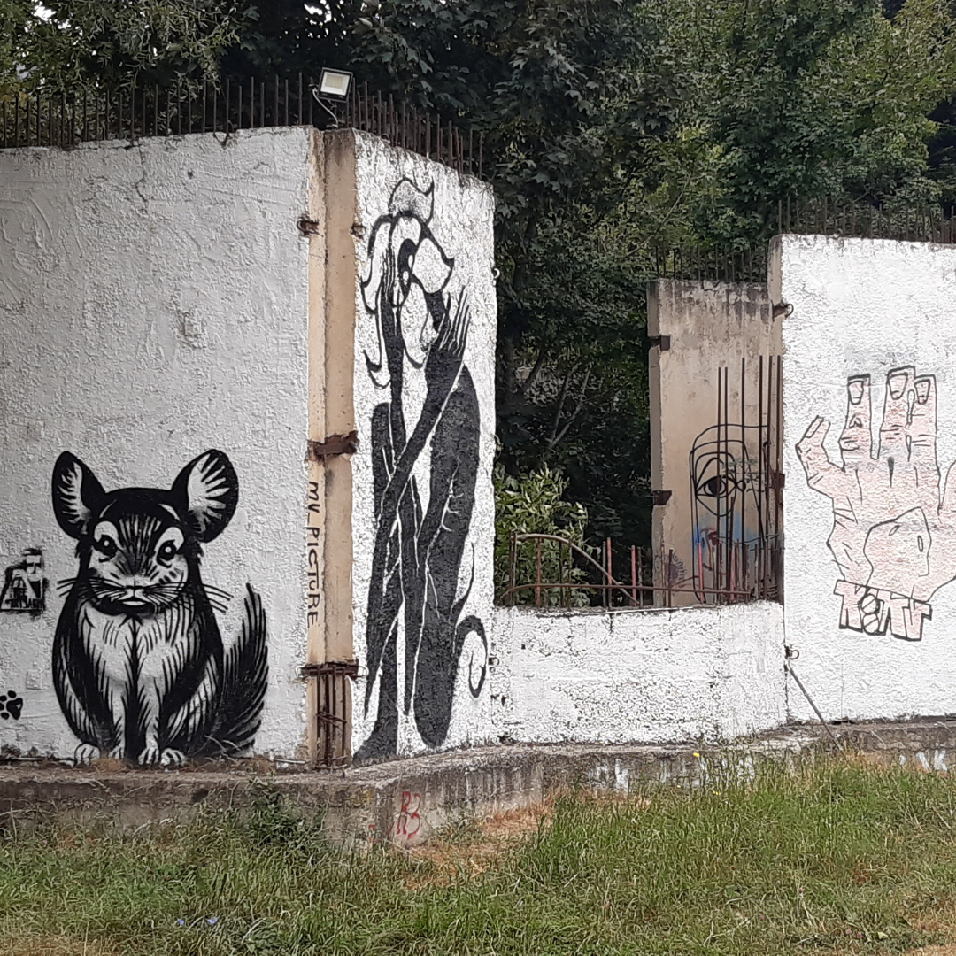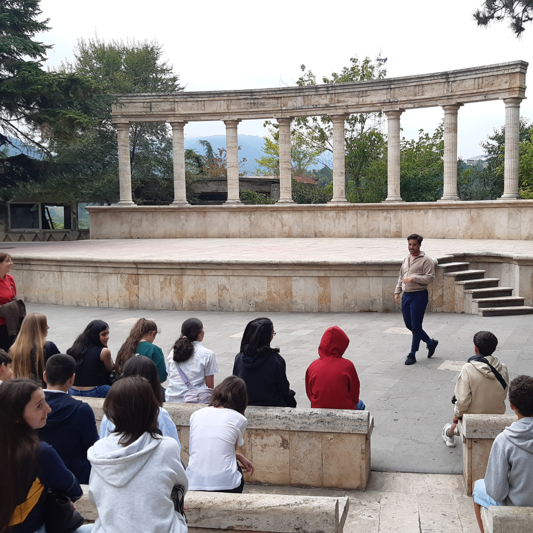 Der Tag der Ankunft begann mit vielen Kennenlern-Spielen und einer Wanderung durch Dilijan, eine Stadt im Norden Armeniens in gebirgiger Umgebung mit etwa 15.000 Einwohnern. Kein Vergleich zum großen Jerewan von der letzten Reise. Außerhalb von TUMO wurde mit den Händen und natürlich mit Übersetzer-Apps kommuniziert, in der Stadt sprach sonst niemand Englisch und ich sprach weder Armenisch noch Russisch. Auch in Dilijan fielen die Spuren aus der Vergangenheit nicht klein aus: Das neue Amphitheater war eine Hommage an das ursprüngliche Gebäude „Rotonda“ aus dem 19. Jahrhundert und sollte an die Theatergeschichte der Stadt erinnern. Aber auch viele Spuren von Gebäude-Ruinen prägten das Stadtbild, häufig zusammen mit moderner Graffiti-Kunst.