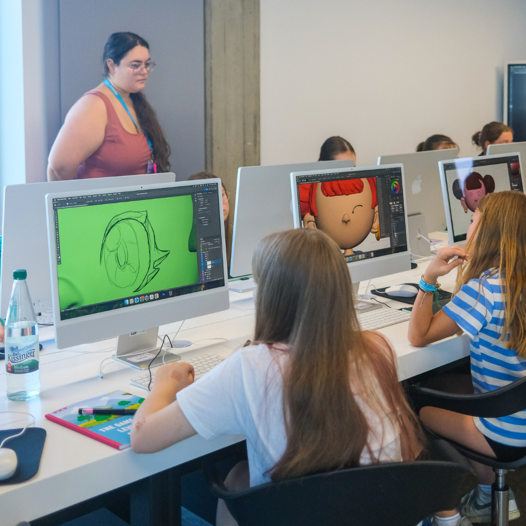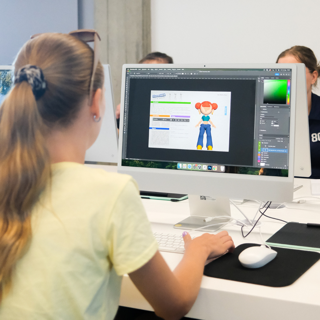 Zum Auftakt hieß es: Zeichenstifte raus und Fantasie an! Die Teilnehmerinnen entwickelten ihre eigenen Charaktere, überlegten sich Eigenschaften und Persönlichkeiten und hielten diese in farbenfrohen Zeichnungen fest. Am Nachmittag folgte der erste Schritt in die digitale Welt: Beim 3D-Modeling wurden die Figuren am Computer geformt, in Pose gebracht und für den späteren 3D-Druck vorbereitet. Schon am ersten Tag entstand eine Vielfalt an ganz individuellen Charakteren – jedes Mädchen brachte dabei ihre ganz eigene Handschrift ein.